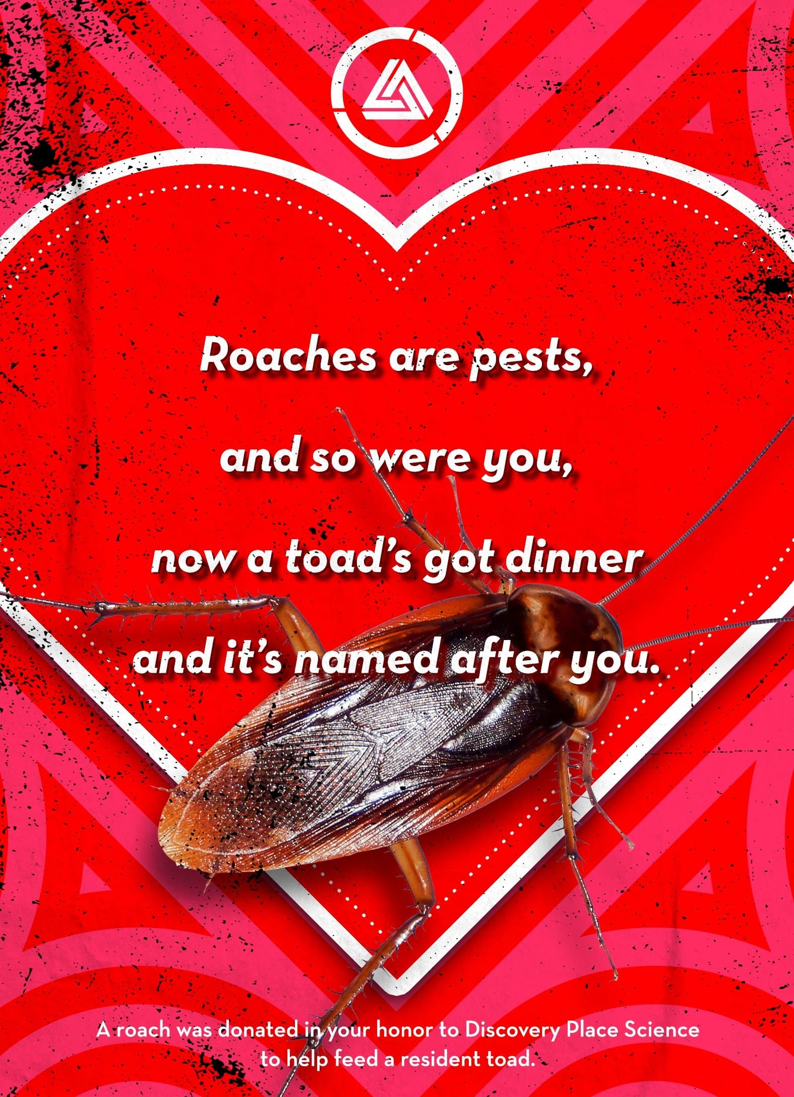 🪳 Name a Roach after an ex, enemy, or the guy who cut you off on I-77. They'll get fed to one of our animal ambassadors—like Marnie the Marine Toad or Turner the Eastern Box Turtle. What's more therapeutic?